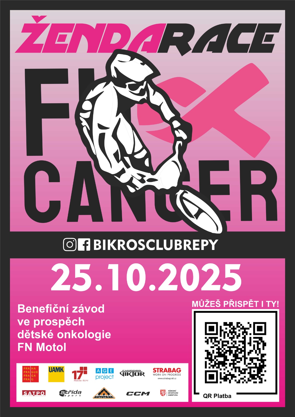 V sobotu 25. 10. 2025 se v Praze – Řepích pojede již 12. ročník BMX závodu ŽENDARACE. Jedná se o poslední závod letošní domácí bikrosové sezóny, kde cílem není dosažení co nejlepšího umístění či získání bodů do celkového pořadí, nýbrž nasbírání co největší finanční částky, která dále putuje na konto Kliniky dětské hematologie a onkologie 2. FN Motol v Praze.